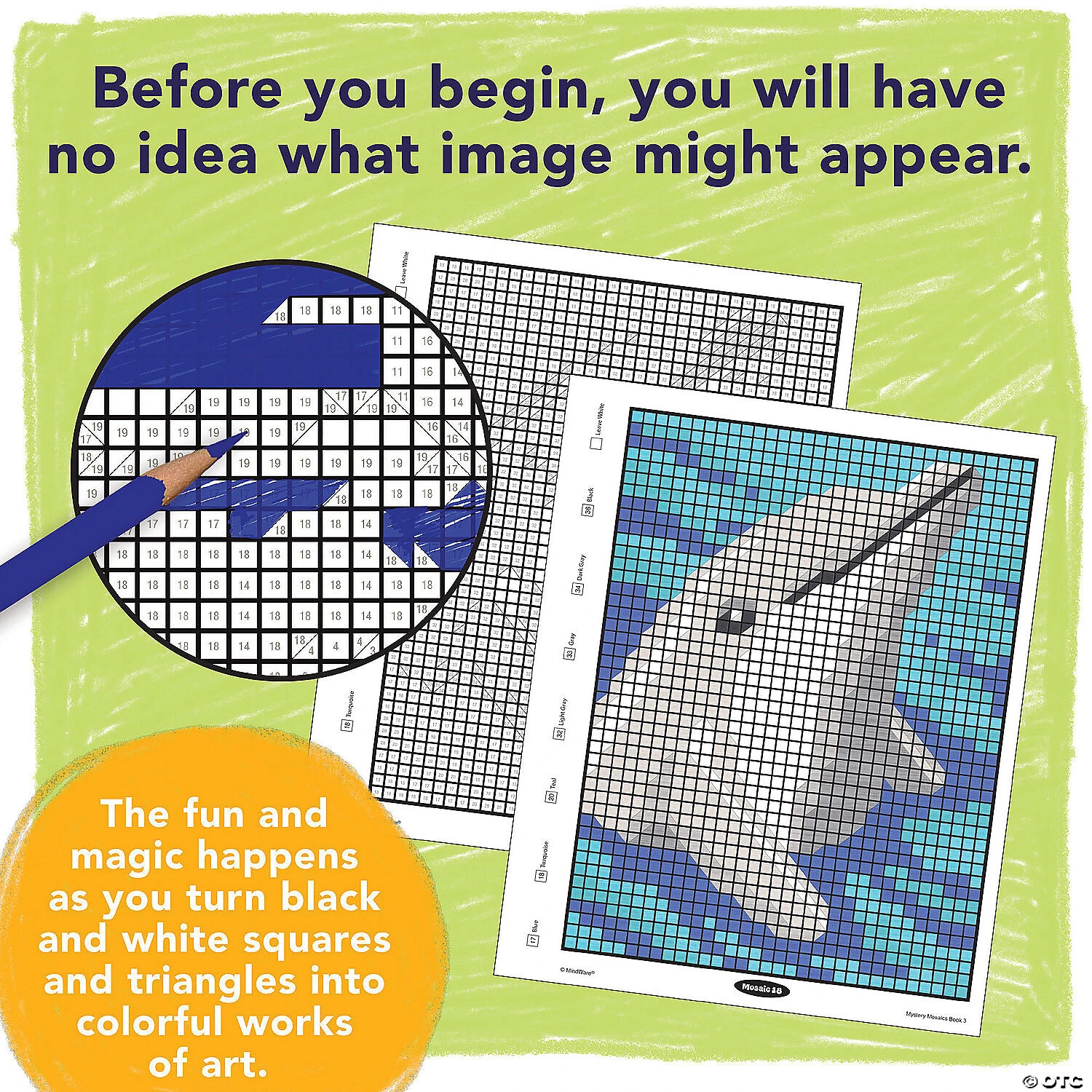 Designed to build the visual perception skills of the most creative puzzlers, Mystery Mosaics: Book 3 is filled with 18 amazing images disguised as numbered squares. At first glance, you will have absolutely no clue what each completed picture might turn out to be…follow the number guide, apply color, and watch an incredible mosaic design take shape! Featuring 18 perforated pages including 4 fold-out, 10″ x 15″ double-page spreads, this new book pairs perfectly with our brilliantly-hued, 36-count Colored Pencil Set (sold separately). The book and pencils are printed with coordinating numbers to make your coloring experience even more relaxing and enjoyable. Download Sample Page