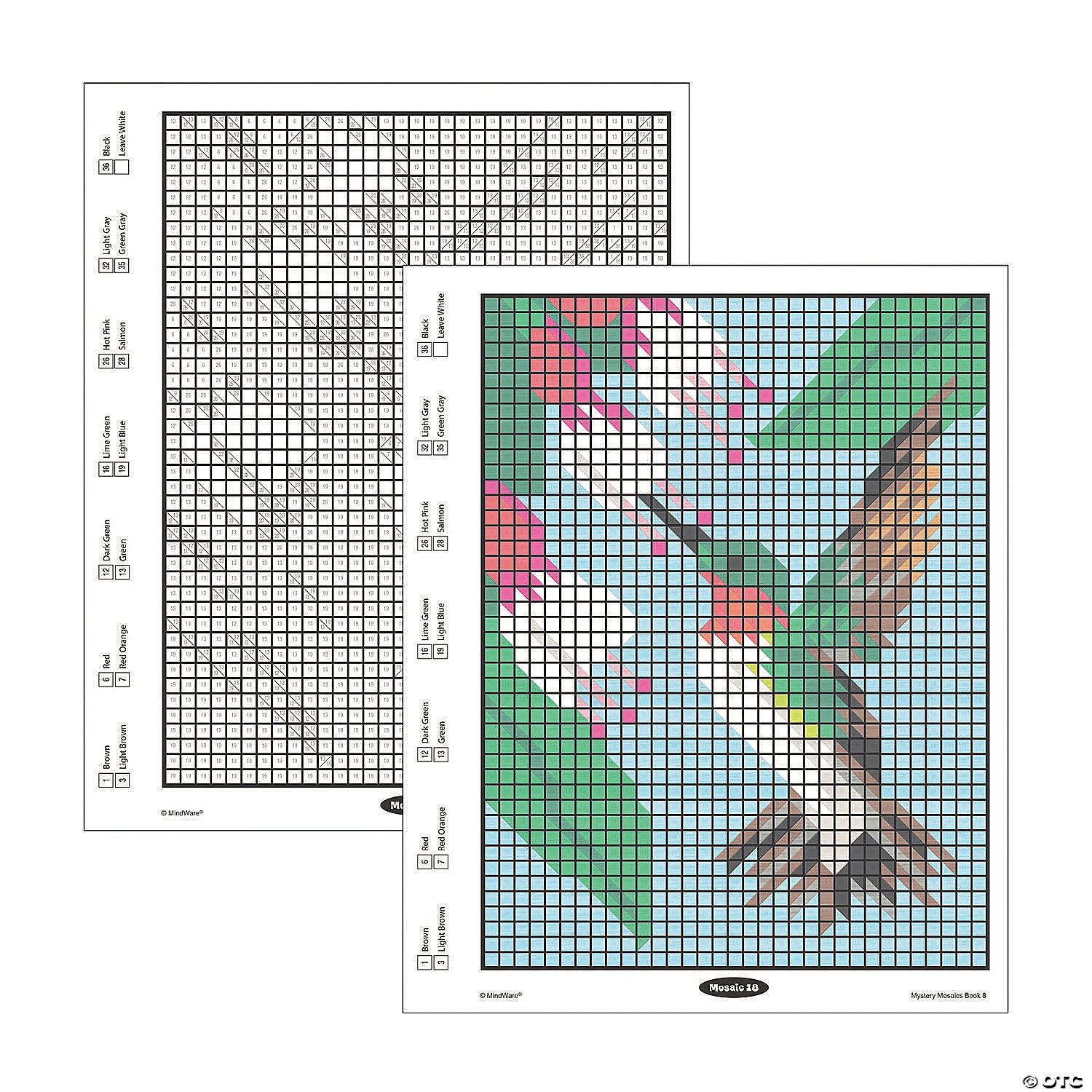Designed to build the visual perception skills of the most creative puzzlers, Mystery Mosaics: Book 8 is filled with 18 amazing images disguised as numbered squares. At first glance, you will have absolutely no clue what each completed picture might turn out to be…follow the number guide, apply color, and watch an incredible mosaic design take shape! Featuring 18 perforated pages including 4 fold-out, 10″ x 15″ double-page spreads, this new book pairs perfectly with our brilliantly-hued, 36-count Colored Pencil Set (sold separately). The book and pencils are printed with coordinating numbers to make your coloring experience even more relaxing and enjoyable. Download Sample Page