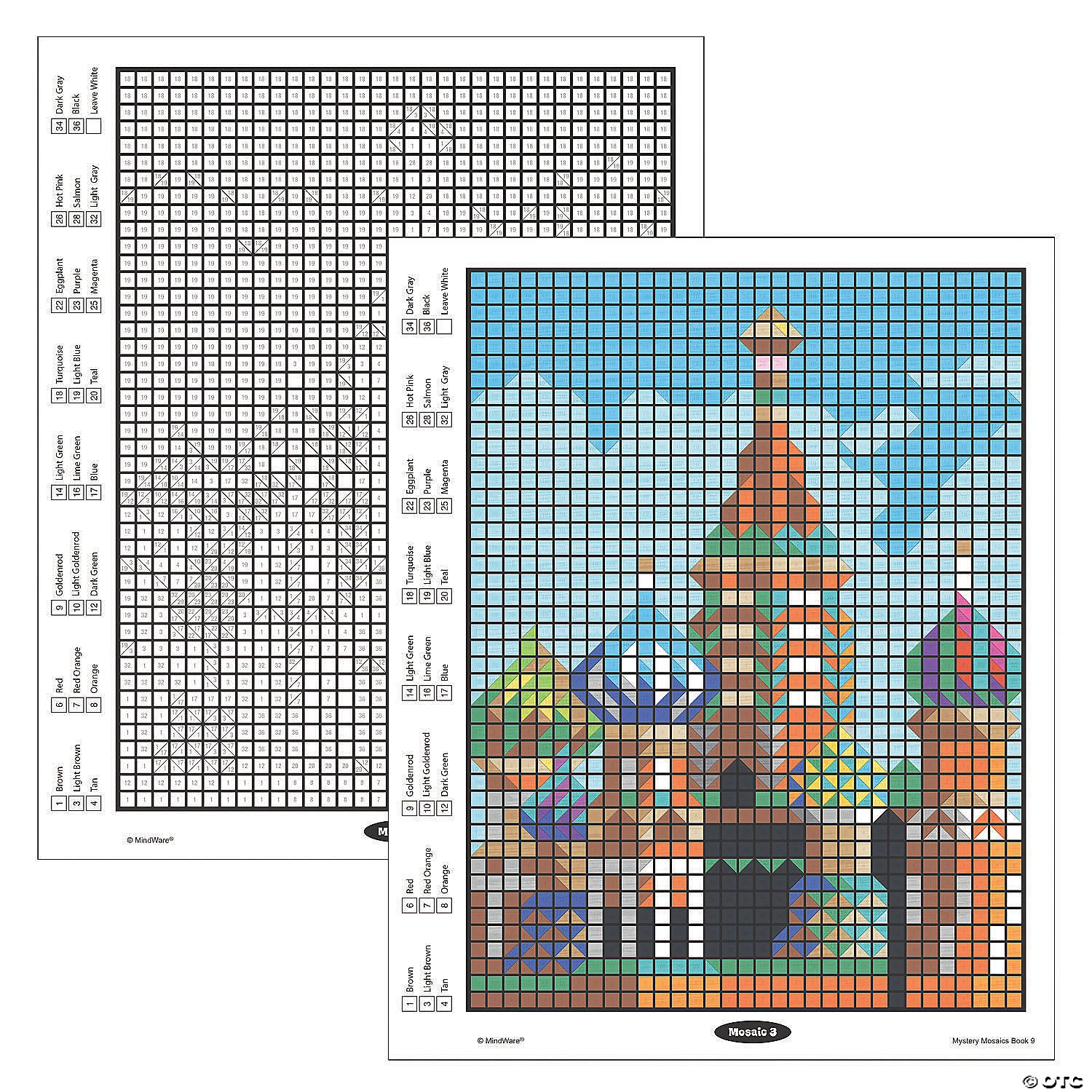 Designed to build the visual perception skills of the most creative puzzlers, Mystery Mosaics: Book 9 is filled with 18 amazing images disguised as numbered squares. At first glance, you will have absolutely no clue what each completed picture might turn out to be…follow the number guide, apply color, and watch an incredible mosaic design take shape! Featuring 18 perforated pages including 4 fold-out, 10″ x 15″ double-page spreads, this new book pairs perfectly with our brilliantly-hued, 36-count Colored Pencil Set (sold separately). The book and pencils are printed with coordinating numbers to make your coloring experience even more relaxing and enjoyable. Download Sample Page