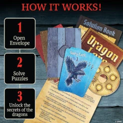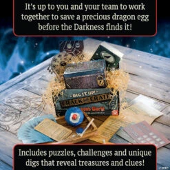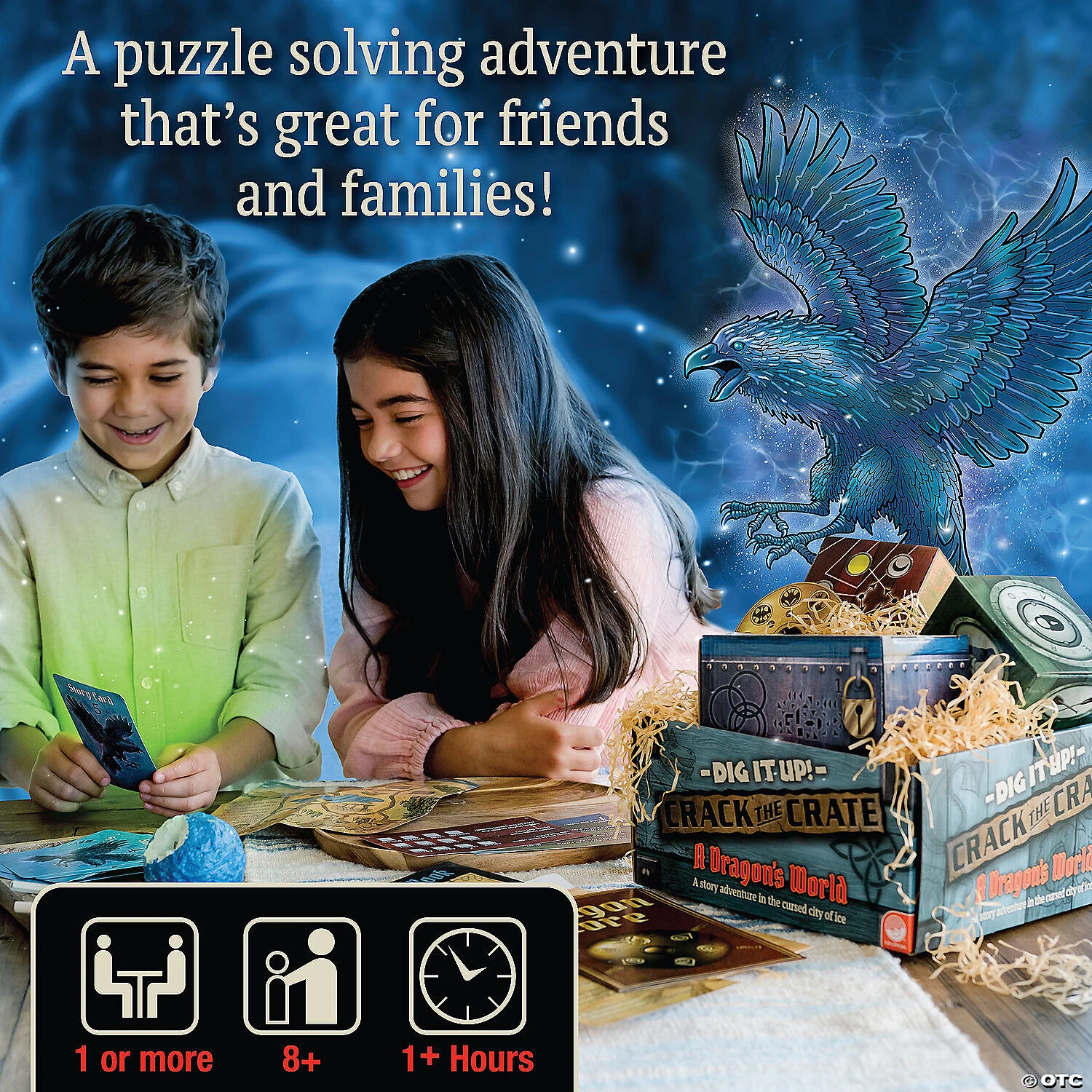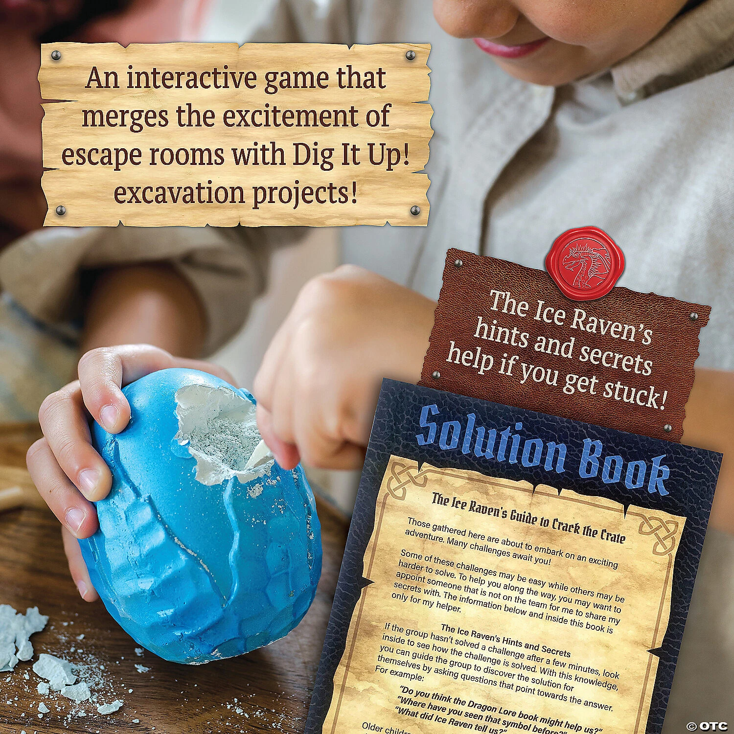 This interactive, one-time-use game lets you merge the excitement of experiential escape rooms and Dig It Up! excavation projects into one exciting group activity! Work together with friends and family to save a precious baby dragon egg and keep darkness from spreading across the land. Do you have what it takes to overcome the series of challenges, unlock the secrets of the dragons and break the curse? • Strengthens creativity, cooperative play and critical thinking• 1 or more players• Unique family game guaranteed to intrigue members of all ages• Includes 3 crates, 1 egg dig, 2 orb digs, 2 digging tools, 10 story cards, 9 challenges, 3 answer cards, mystery treasures, amulet, key, map, solution book and instructionsAge Recommendation: Ages 8 and up