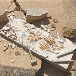 Bring home the mystery and excitement of a paleontological dig! Use the heavy-duty tools to carefully extract a dinosaur skeleton that is buried in plaster. Once the excavation is complete, the hard-plastic bones can be washed and assembled to form a complete dinosaur model. Bones snap together and can be repeatedly reassembled. This kit includes:The Big Dino Model: Triceratops that creates an assembled Triceratops model measuring 12″ long when dug up and completed. Includes a fossil block, hammer, flat chisel, point chisel, brush, sponge and instructions.• Experience the thrill of discovery with model dinosaur skeleton bones!• A hands-on lesson in science and discovery for kids• Dino model can be re-assembled again and again Download Lesson Plan