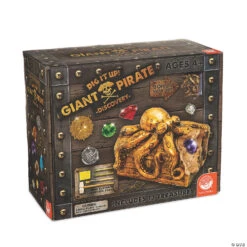 Ye treasure awaits! Uncover a trove of pirate treasure as you dig through this giant pirate chest. From jewels and coins to a pirate key, you’ll reveal a total of 13 magnificent finds, while using the guidebook to journal about your discoveries and read about buccaneers. The big Treasure Map poster is covered with cool fun facts about real-world places seeped in pirate lore! Did you know that if you walk the beaches of Padre Island, you may still find old gold coins in the sand? Just soak your dig project in a bowl or sink, chip away with your tools, and discover! This kit comes with a whole set of excavation tools for hammering, digging and brushing.• Contains 12 pirate treasures to discover, plus one bonus mini discovery!• 18” x 24” Treasure Map poster is filled with lore and treasure facts• Hands-on lesson in science and the natural world for kids• 2 chisels allow you to dig with a friend• Includes a treasure-filled pirate project measuring approx. 7” long, a mini treasure dig, 13 total treasures, 2 chiseling tools, 1 hammer, 1 excavation brush, 1 sponge, an infographic treasure map poster and a guidebook/excavation journal