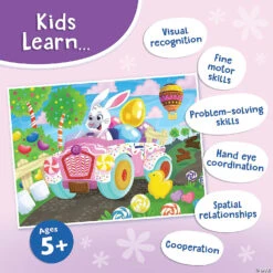 Scratch the 7 scented pieces of this Easter fun puzzle to release favorite holiday aromas of chocolate, marshmallow, and candy. Then arrange all of the pieces into a colorful Easter inspired scene. The thick, durable pieces are easy to handle and allow for long-lasting play year after year!• This scratch-and-sniff Easter puzzle looks as good as it smells!• Develops visual recognition, cooperation, fine motor development, problem solving and cognitive skills• Includes 76 pieces• Completed puzzle measures 14” x 19”