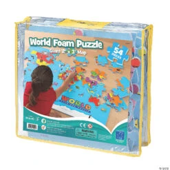 You’ve got the whole world in your hands with this giant, fun-to-assemble foam jigsaw puzzle. Tour continents and countries all around the world—from Australia to Zimbabwe. Shhh…They’re Learning! • Hands-on introduction to foreign countries, oceans, and exotic animals from every corner of the world• Builds fine motor and hand-eye coordination• Develops problem solving and cognitive skillsCut to the Chase • Includes 54 durable extra-soft foam pieces that are water-resistant and easy to clean• Big pieces makes it easy for little hands to manage• Part of the award-winning GeoSafari line• Measures 3’W x 2’H Special Shipping Information: This item ships separately from other items in your order. This item cannot ship to a P.O. Box. This item may be subject to additional processing days. ITEM IS NOT ELIGIBLE FOR EXPEDITED SHIPPING