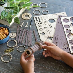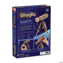 The thrill of constructing your own working telescope becomes even more fascinating as the assembled, elaborate mechanism brings faraway objects into focus. Enjoy an up close and personal view of objects that are up to 500 feet away! Featuring a leather-like band and metal accents, this telescope can be placed on the adjustable tripod or held in your hand as you magnify the world around you. Eye spy fun adventures ahead!• Develops fine motor skills, creativity, perseverance and dexterity• Includes 5 wood sheets with 314 precut pieces, 2 metal rings, 1 metal chain, 2 lenses, 1 faux leather band, 1 metal plaque, 2 screws, screwdriver, sandpaper, and illustrated instructions• Actual lenses allow viewing up to 500 feet away• Removeable and adjustable tripod base• Assembled size: 13″ x 9.5″ x 12.75″• Average building enthusiasts can complete the puzzle in about 5 hours