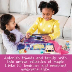 This complete magic kit is packed with everything you need to become a magician! Learn the secrets of more than 20 tricks, from making objects disappear into thin air to performing time-tested card tricks. More than simply a box full of props, you’ll also receive step-by-step video instructions ideal for beginner and seasoned magicians alike. Prepare to amaze friends and family with your newfound talents! • Over 25 pieces included to perform more than 20 tricks• Promotes creativity, imaginative play and self-confidence• Great conversation starter that also builds interpersonal and public speaking skills• Boost fine motor skills and mental health• Ideal for use at home or in the classroom• Box doubles as presentation case• Includes online instructional videos