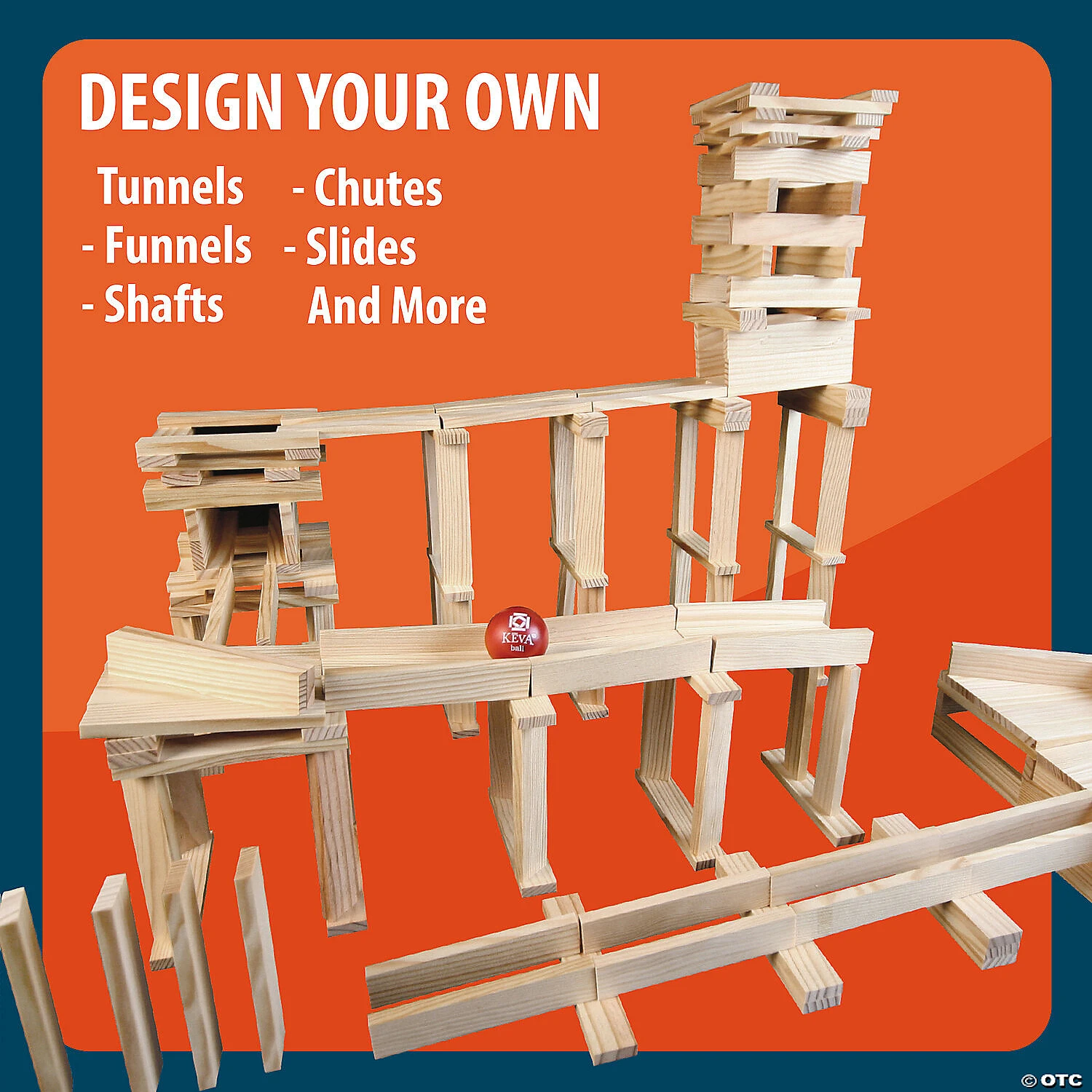 No glue or connectors required…simply stack wood planks to create buildings, monuments and geometric forms. Its the ideal activity to help kids gain an understanding of balance and proportion, as well as an interest in architecture, building and design. A full-color idea booklet with build-out instructions and two lightweight KEVA balls are included. The Benefits of Maple: Premium maple planks are tough, durable and stack perfectly time after time. Beautiful maple wood grain creates works of art. KEVA Maple Planks are proudly made in the U.S.A.
