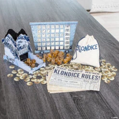 Roll for the gold in this easy-to-learn game of strategy and luck. Players compete for gold but must beware: one false move could set opponents up for success. A shifting cart changes up the claim objectives for each round in this exciting game where a few good rolls and a strategy that pans out will leave everyone with Klondice fever!• Game play combines the perfect balance of strategy and luck• Easy to learn and play in 20 minutes• Game includes gold glittery diceDownload Rules