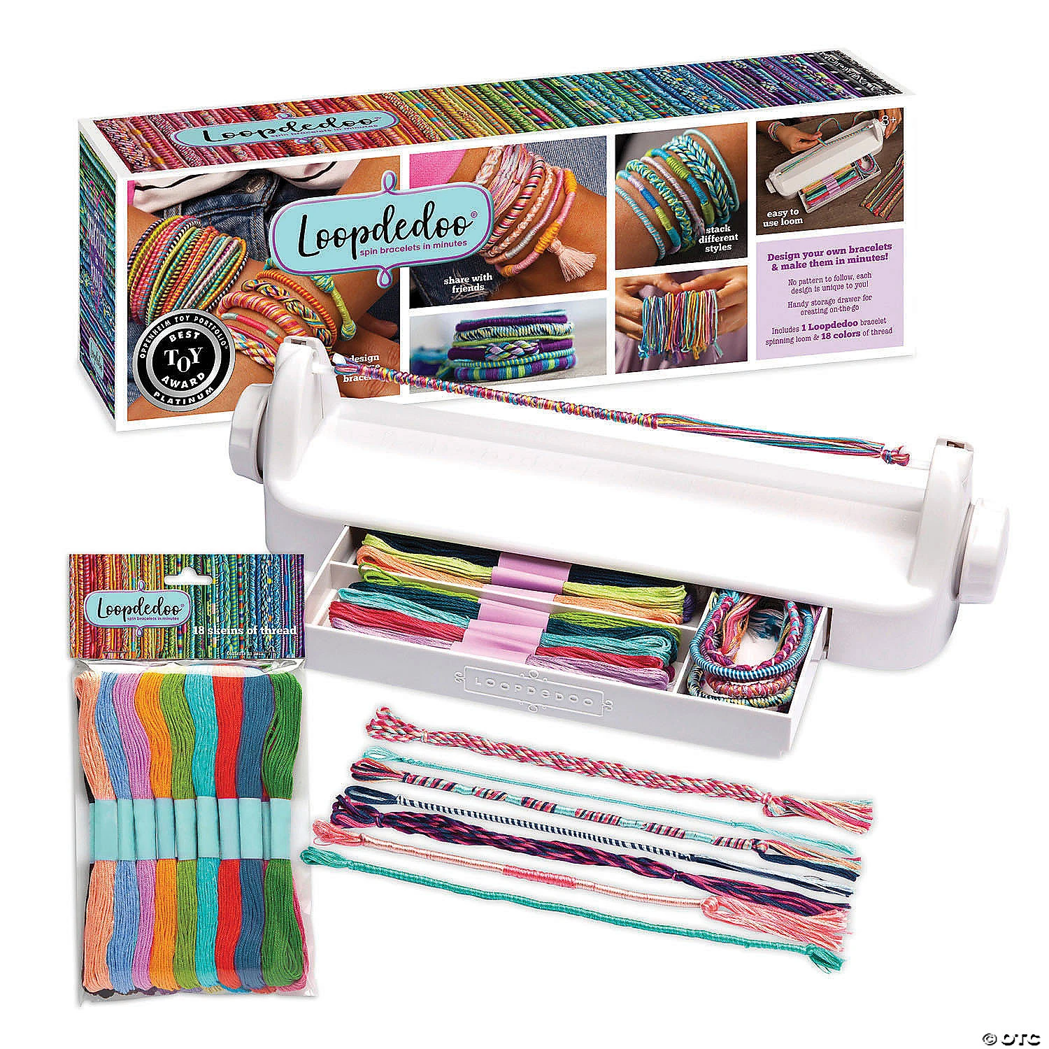 With this kit, kids can create unique friendship bracelets in minutes. The award-winning bracelet maker lets your child change the thickness, looping style, thread quantity, and color combinations to create one-of-a-kind bracelets and accessories. Avoid the frustration of complicated knotting techniques with the patented spinning loom and travel-ready design. An updated technique takes a nostalgic craft to the next level, and kids, tweens, and teens will enjoy the modern twist. Introduce your kids to a simple, screen-free hobby that they can enjoy with their friends. • Loopdeedoo Friendship Bracelets kit lets kids create colorful bracelets from embroidery floss• Promotes creativity and self-expression and strengthens friendships• Includes Loopdedoo spinning loom (with secret storage drawer) and 18 skeins of high quality 100% cotton embroidery thread• We appologize, free bonus thread pack is out of stock for this season