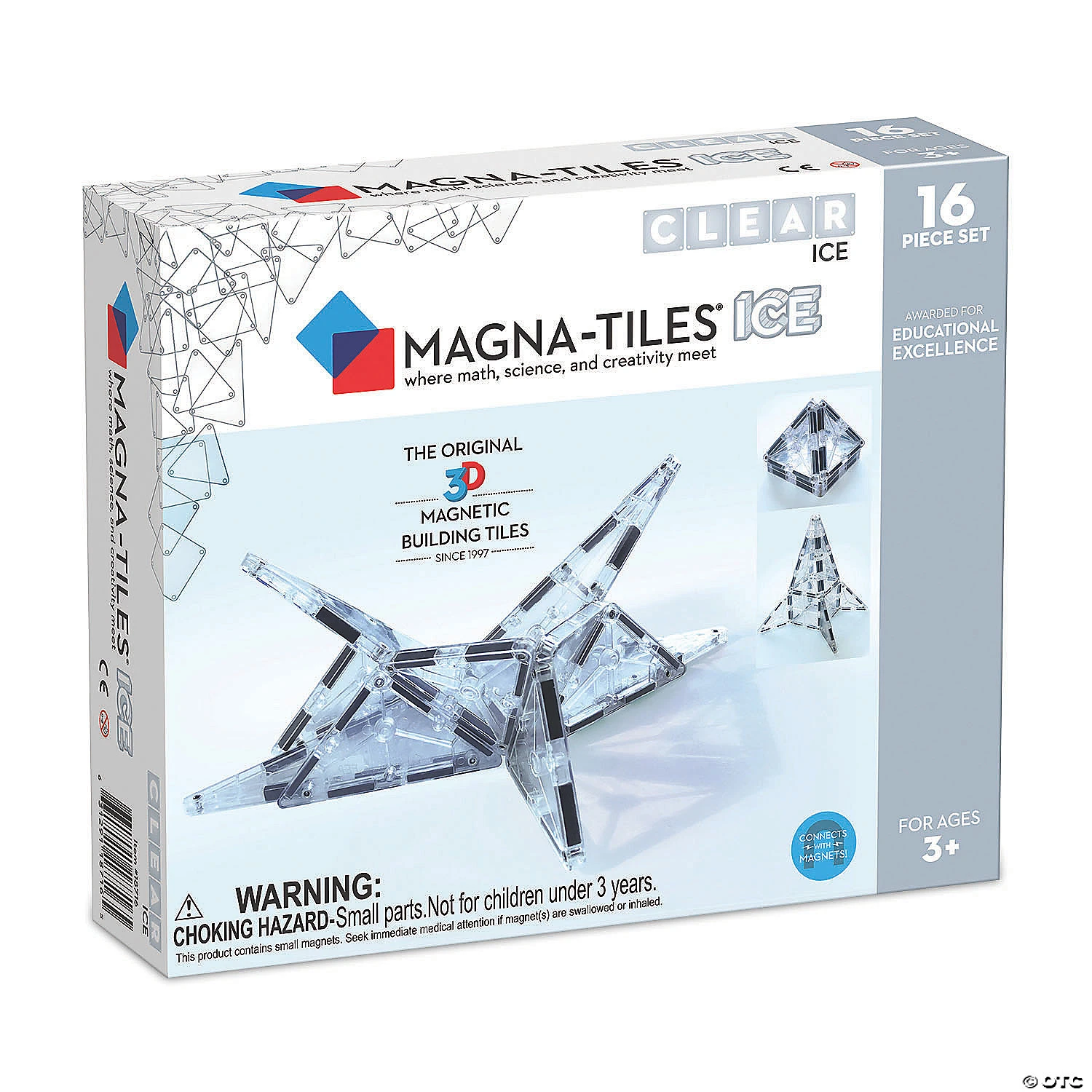 Build igloos, windows, glass houses and more with the Magna-Tiles® ICE set. Set includes clear, colorless tiles that snap together easily with magnets to create structures and designs. Make patterns, and designs on the floor, or use the magnets and create vertically on the fridge! This family-founded company has a heartfelt mission to help kids access simple, beautiful play as they discover more complex applications for the tiles. This is truly a toy that grows with your child, and provides hours of exploration and fun. This clear version of the classic tiles opens new possibilities for adventure!• Magna-Tiles® ICE set• Encourages free, creative play, develops math science, spatial and tactile skills• Includes 16 pieces; each shape has a base measurement of 3 inches