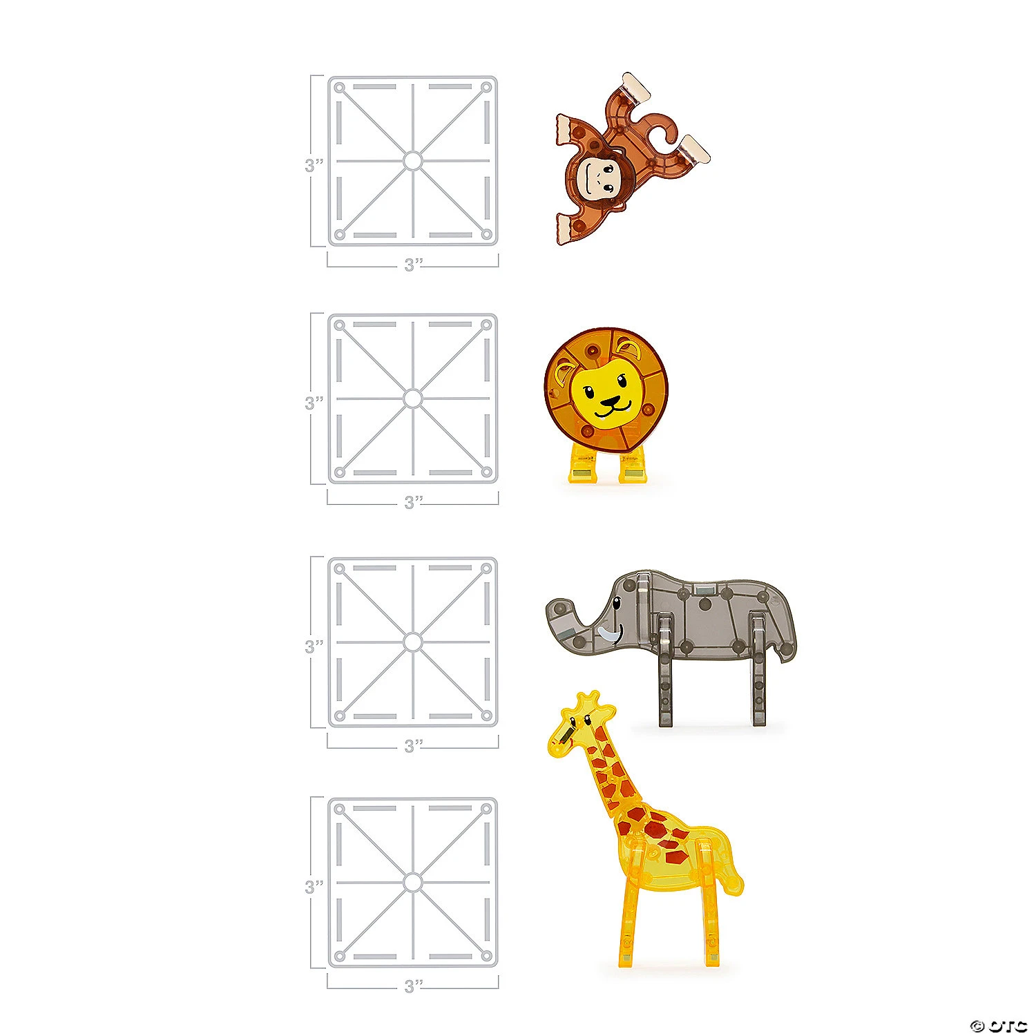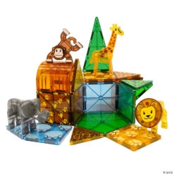 Anything can happen in the wild! Start your expedition with the Safari Animals set for a roaring good time. Monkey around with magnetic, savannah-themed tiles as you explore the vibrant-colored habitat with your four safari sidekicks.• 25 piece set including 4 safari figurines, 9 classic small squares, 2 classic right triangles, 2 cassic isosceles triangles, 6 classic equilateral triangles, 1 arch, 1 pentagon• Four magnetic safari friends enhance the fun: Giraffe, Monkey, Lion, and Elephant• Savannah-themed set with leaf and footprint tiles in realistic colors• Encourages open-ended/unstructured play, storytelling, and creativity