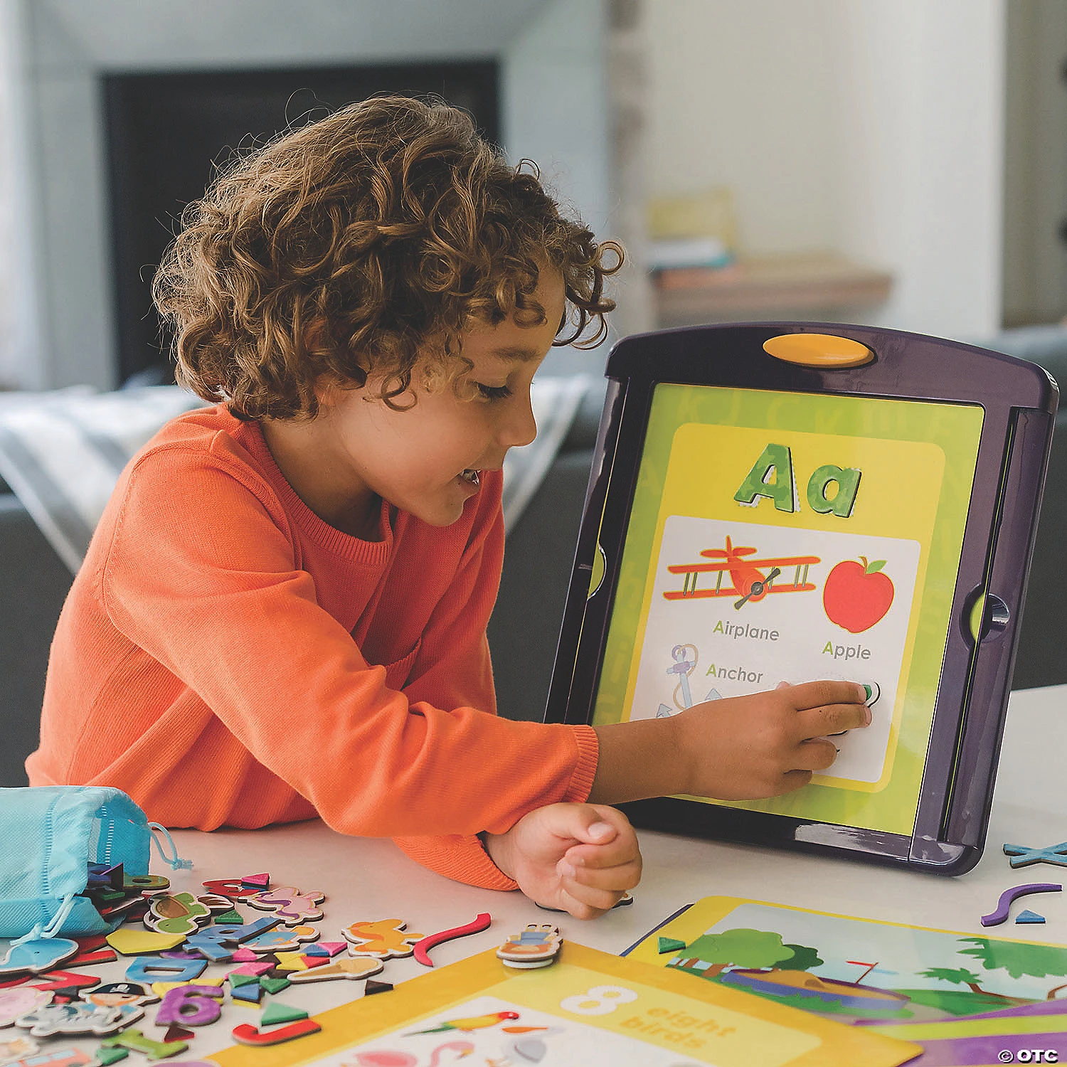 Young children can learn letters and sounds, numbers and counting using this play and learn toy. They can press the magic release button, which will guide them from letter-to-letter, number to number, and pattern to pattern. Use the accompanying magnetic letters and numbers on the screen to strengthen matching and recognition. Play and learning become totally interactive! • MagnaMix Play and Learn Set• Builds number, letter, and pattern recognition to strengthen pre-literacy• Includes Magic Learning Board, assorted puzzle sheets, magnetic shapes, letters, numbers and characters
