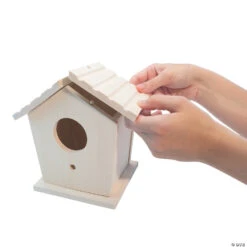 Invite local birds to your yard with a bird house you make and decorate yourself! Made of thick pine boards that slot together for easy construction, this sturdy birdhouse is designed for outdoor use. The full-color guide includes instructions, painting tips, and advice on how to attract birds to your birdhouse as well as facts about the birds that you may see.• An outdoorsy MYO craft that can be enjoyed year-round• Sparks interest in bird watching and natural science• Engages creativity, fine motor skills and DIY building basics• Sturdy pine construction for long-lasting final product measuring approximately 8” wide x 7” tall• Includes 9 solid-wood pre-cut birdhouse pieces, 13 paints, wooden hanging hook, twine, 2 paintbrushes, craft glue, instructions and guidebook