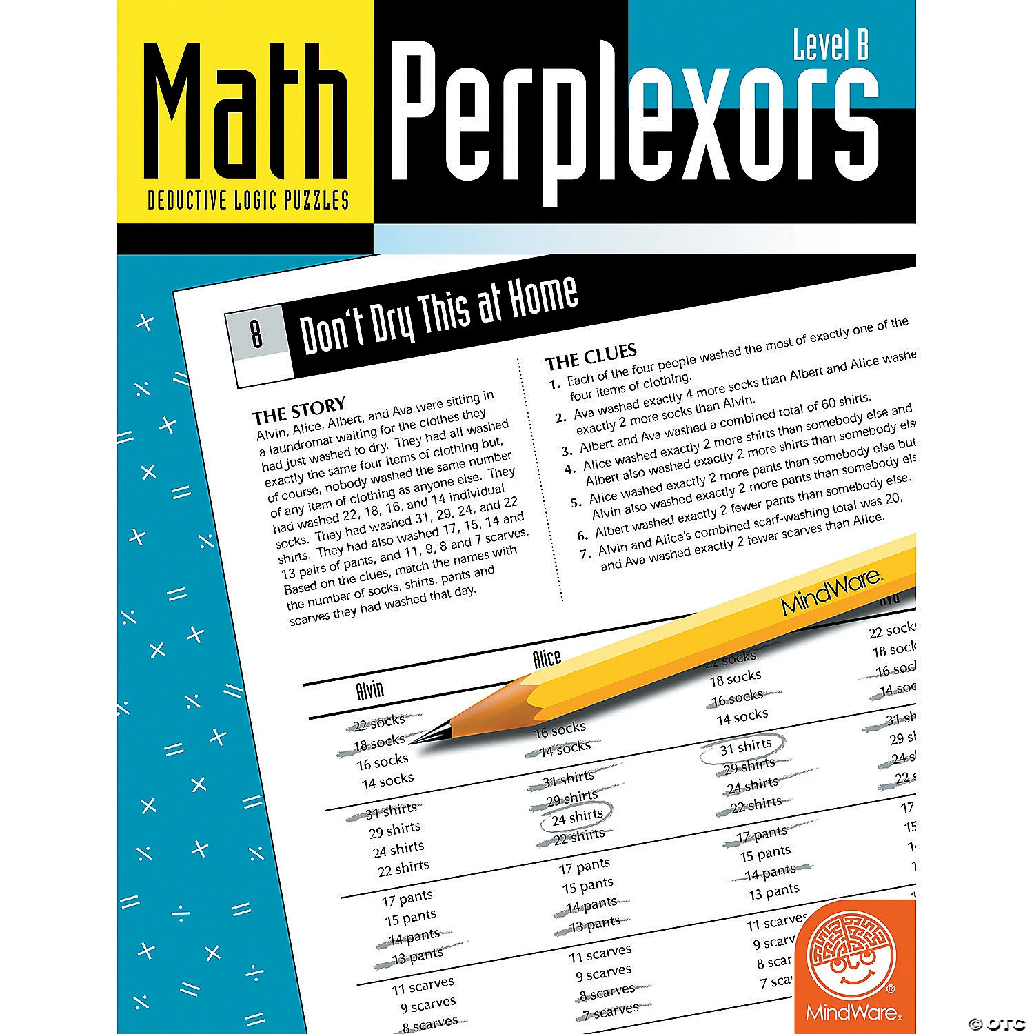 Puzzle solvers will love these entertaining story problems that require deductive reasoning, logical elimination and math skills. Using clues, cross off words in a list of all possible answers to arrive at the solution. Math Perplexors: Level B (Ages 9 to 10) has 50 problems which increase in complexity as you work your way through the book. This book is reproducible for single-classroom use. Please click the link below for a free printable worksheet sample. Download Sample Page