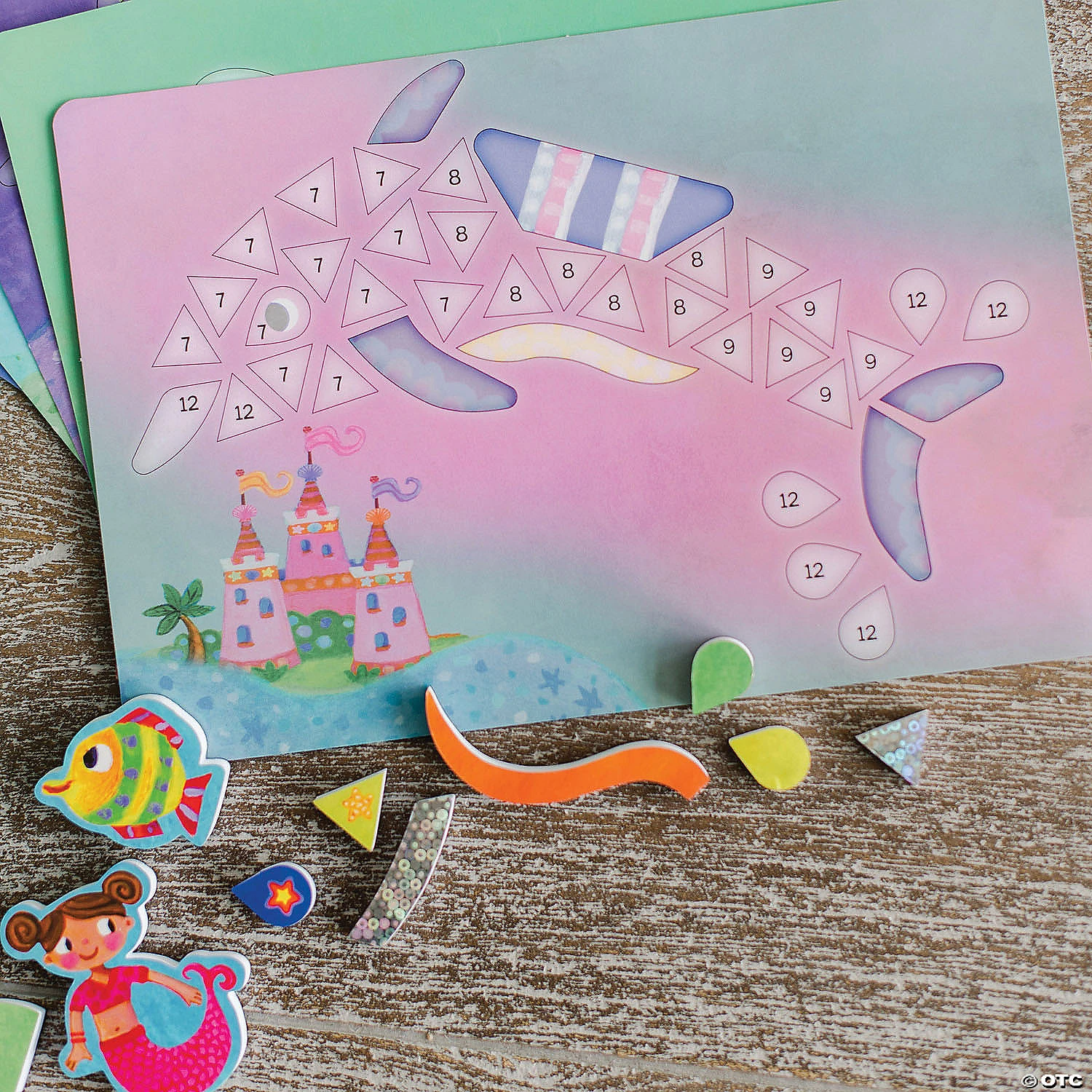 Create colorful whales, mermaids and other undersea images or conceive your own unique designs with this shimmery imagination-sparking activity! A great way to build fine motor skills, these thick magnets are easy for small hands to swim into place on the colorful underwater backgrounds that are conveniently held in place on the built-in easel. Matching up the numbers and shapes on the patterned backgrounds helps kids to practice following directions while boosting artistic confidence, and the blank scenes let their creativity soar to great heights! When playtime is over, store the magnets and backgrounds inside the sturdy carrying case until the next imaginative play session. Includes 6 double-sided background sheets, over 300 magnetic shapes and a travel case with built-in easel and handle.