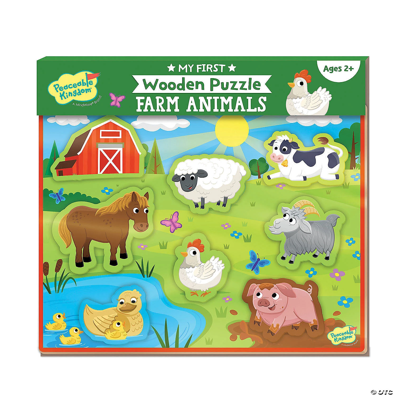 Small hands, big fun! These wooden puzzles contain two activities in one for active toddlers. First,they can place the pieces in the correct spot on the puzzles, working on fine-motor skills and shape recognition as they go. Second, the thick, sturdy puzzle pieces in fun animal shapes can be used as standalone toys so kids can let their imaginations run wild and have even more fun!• 8 thick and sturdy wooden pieces• Colorful and playful designs• Puzzle pieces can stand on their own for pretend play• Learn fine motor skills and shape recognition by matching the animals to their correct spotAge Recommendation: Ages 2 and up