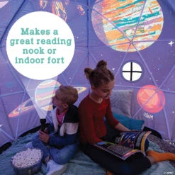Young astronomers will be over the moon for the hidden world that opens up to them when they step inside this space fort! Glow-in-the-dark constellations appear when the interior is scanned with the included blacklight. Great as a reading nook or play space, this indoor fort for kids is spacious enough to encourage hours of relaxation and scientific exploration. It’s like having a mini planetarium at your fingertips!• Learn about astronomy while studying the glow-in-the-dark constellations inside this fort• Ideal for individual or small group use• Set up as a reading nook or indoor fort tent• Includes one 63”w x 55”h fort and one blacklight• 100% polyester cover, PVC frame and ABS connectors