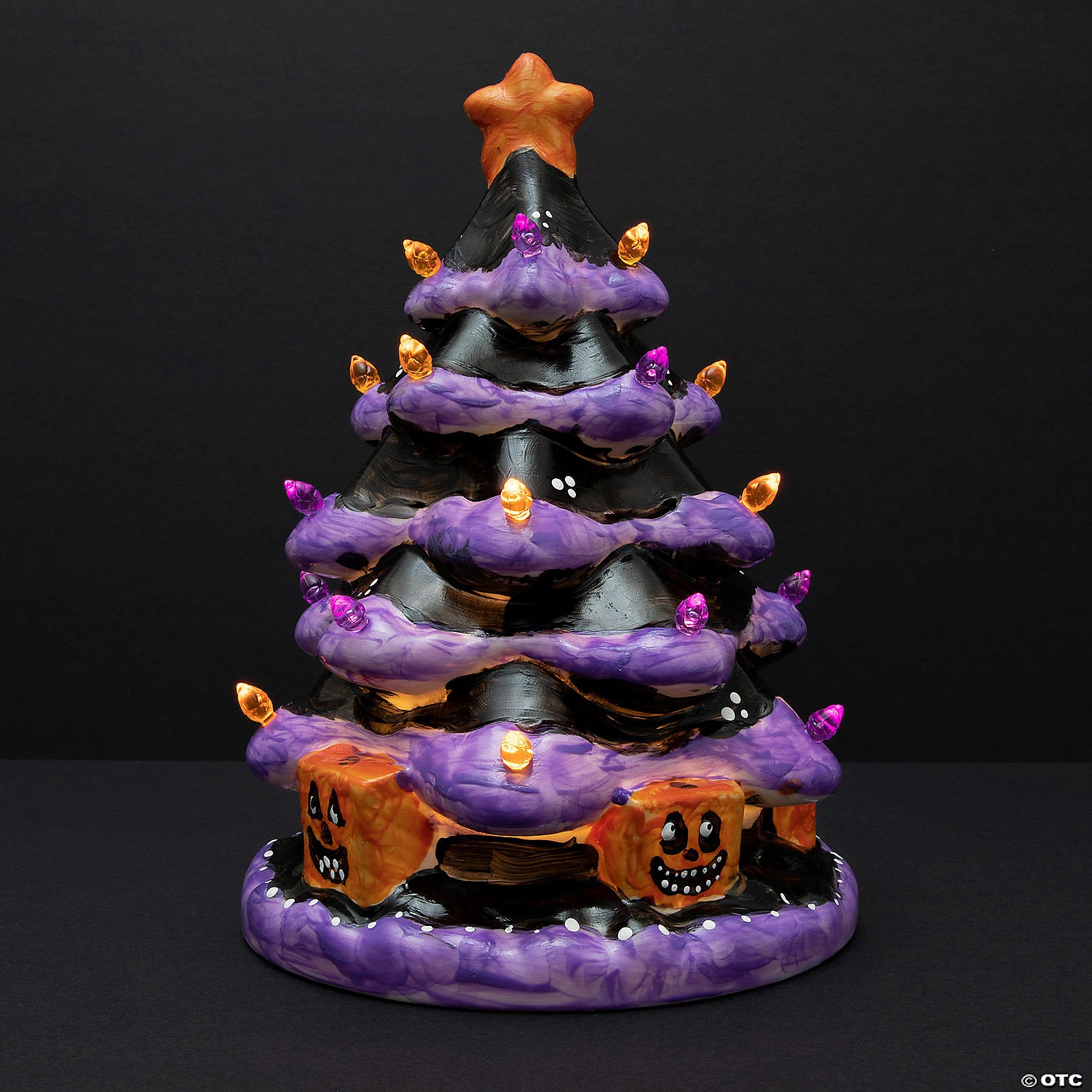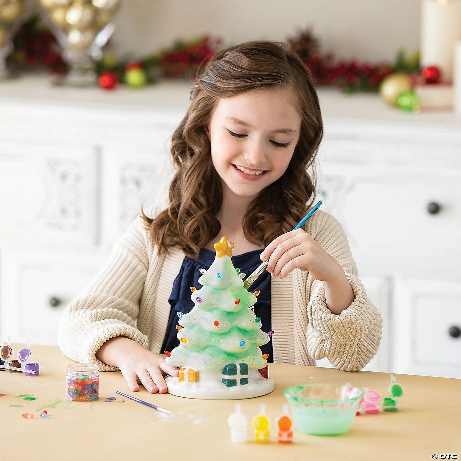This nostalgic tabletop decoration is a delightful way to bring beloved memories of Christmases past into the here and now. Artists can use the included paints, paint brushes and painting guide to decorate this porcelain Christmas tree, then pop the lights into place to make it glow. A convenient timing program turns the lights on and off each day so there’s no risk of forgetting!• Porcelain tree measures 8.5″ tall• Includes 90 Artificial Light Bulbs, 12 Paints, 2 Paint Brushes and Painting Guide• Set-it-and-forget-it timing feature automatically turns the lights on and off each day• Requires 3 AAA batteries (not included)
