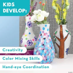 Showcase beautiful flowers and artistic abilities all at the same time with Paint Your Own Porcelain Vases! Design your own creation then oven-bake for a glossy finished work of art with this high-quality kit! The colorful and easy-to-follow instructions show you painting techniques to create the artistic effect you want—color mixing, brushing, sponging and more! The Paint Your Own Porcelain set comes with 3 white porcelain vases—giving you the ability to get creative and use each one differently! Get spooky for Halloween, festive for 4th of July and don’t forget about mom on Mother’s Day! Craft your own paper flowers to keep year round or showcase freshly-picked flowers from the garden. Use as a decorative item for around your house or give to family, friends or teachers as a meaningful personalized gift. Painting is extremely beneficial because it uses both sides of the brain—all while creating a relaxing and entertaining activity. Just paint and bake, all that’s needed is the touch of an aspiring artist and a little concentration!• Strengthens creativity, hand-eye coordination, patience, fine motor and design skills• Ideal for celebrating birthdays, holidays and special occasions• For long-lasting use do not put in dishwasher—wash by hand• Set of 3 (5 in. tall) vases, 12 bright colors of porcelain paint, and paint brush