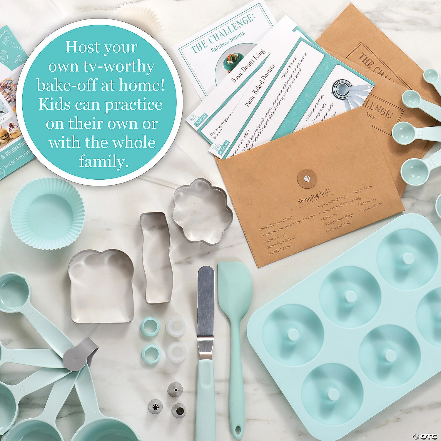 Kids will bake fun, themed recipes using the instructions and tools in this kit. High quality kitchen tools come with imaginative recipe challenges and pro tips to ensure your child finds baking success. Host your own TV-worthy bake-off at home! This kit is the perfect gift for a kid who’s ready to take their skills to the next level in the kitchen. Challenges include recipes for cookies that look like breakfast foods, cupcakes in disguise, and rainbow donuts. Get ready to earn the “Master Chef” title; practice on your own or with the whole family.• High quality kitchen tools, starter recipes and professional techniques for three baking challenges• Helps encourage independence, creativity, and fine motor skills• Includes specialty instruments like custom cookie cutters, silicone donut pan, jumbo silicone cupcake molds, decorating tips, offset spatula, and more.Download The Recipe Shopping List