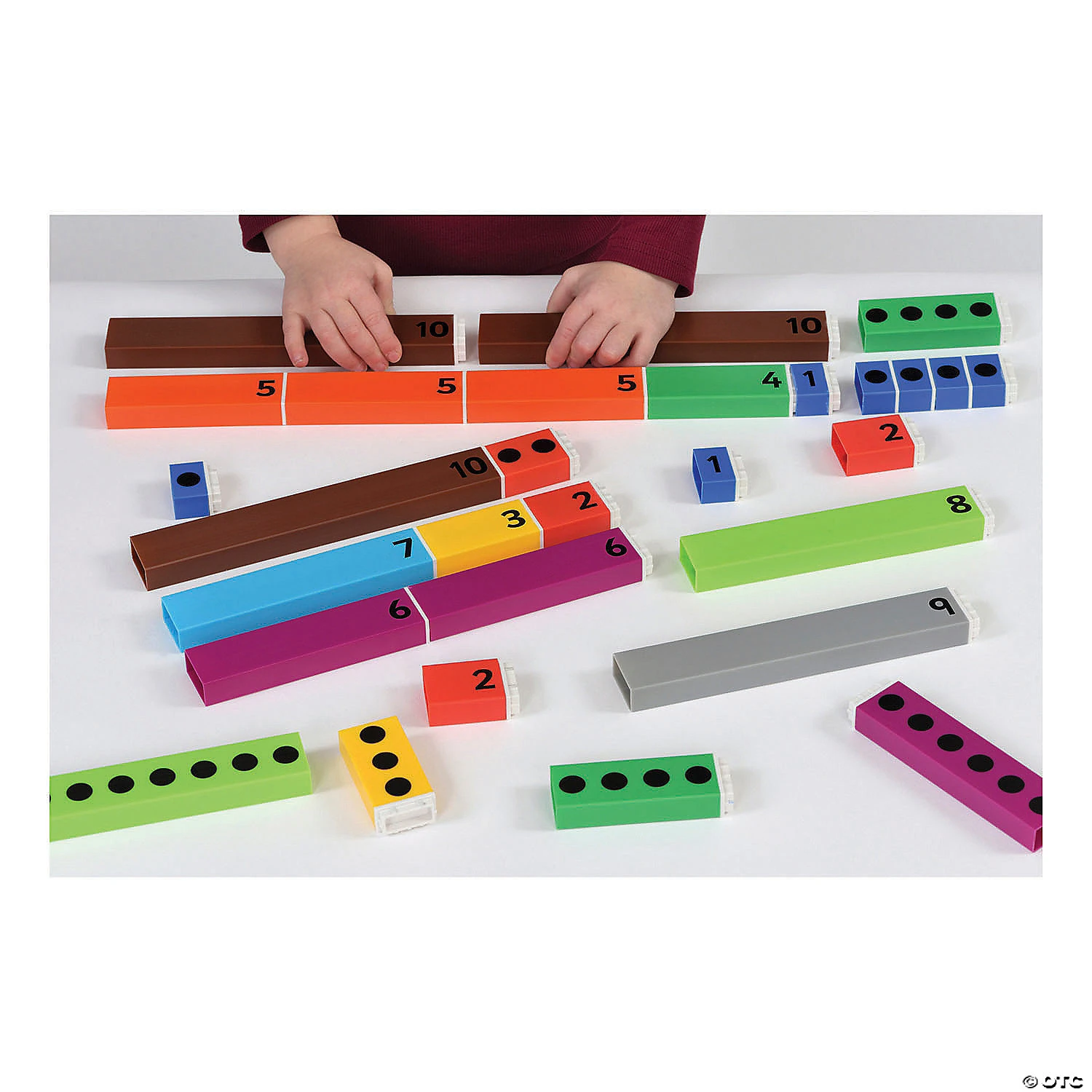 The set of 64 rods has a selection of rods numbered 1-10 and is ideal for smaller groups of children. Each rod has a number on one side and a corresponding number of dots on the reverse side. Our rods join together with ease, and tackle a number of different mathematical areas such as addition and subtraction, and multiplication and division. Each rod is color coded to represent a number with the longest rod (number 10) measuring 7.9″ long x 1.2″ wide. All our rods are chunky and appeal to young Math learners. Age: 3+.Special Shipping Information: This item ships separately from other items in your order. This item cannot ship to a P.O. Box. This item may be subject to additional processing days.Special Shipping Information: This item ships separately from other items in your order. This item cannot ship to a P.O. Box. This item may be subject to additional processing days. ITEM IS NOT ELIGIBLE FOR EXPEDITED SHIPPING