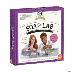 Learn how squeaky-clean science can be with the Science Academy’s Soap Lab! We use soap everyday, but what makes this sudsy substance work? In this hands-on cosmetic kit you will blend bright colors and scents for your own signature soap, learn the history of soap making, experiment with pigments, discover the difference between hydrophilic and hydrophobic molecules and even examine the law of volume! Contents include: lab station, molds, globes, beakers, cosmetic colorants, blendable perfume, titanium dioxide pigment soap and so much more! The detailed guide booklet includes step-by-step instructions, helpful hints when experimenting and fine points on the chemistry behind soap! Adorable mold designs and quality ingredients create a fantastic finished product that will leave your brain feeling challenged and your body clean!• Promotes an interest in chemistry and biology and develops critical thinking skills • Learn about soap’s unique molecular structure as you create your own custom bars • Hands-on science lab that is fun, safe and non-toxic • Over 20 pieces in all