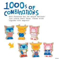 Explore feelings through theater! Theatrical playsets are among the best educational toys, encouraging kids to examine emotions and relationships, develop characters and boost self-esteem. Now kids can create their own dramas and performances featuring mix-and-match magnetic wood characters expressing 6 distinct emotions. The front and back of each character has a different expression and clothes. Outfit characters with accessories like a scarf, cape, apron, camera or canteen, then choose a backdrop and floor for the scene or design your own and clip it to the stage. When it’s time to roll, call “Action!” to begin the performance! • The theater-themed set that encourages emotional exploration through pretend play. • Develops creativity, confidence, socio-emotional development and communication skills.• Includes 3 double-sided, mix-and-match wooden figurines, 8 costume accessories, 6 cardboard backdrops, 2 floor options, 1 stage, 2 plastic clips and an instruction card.
