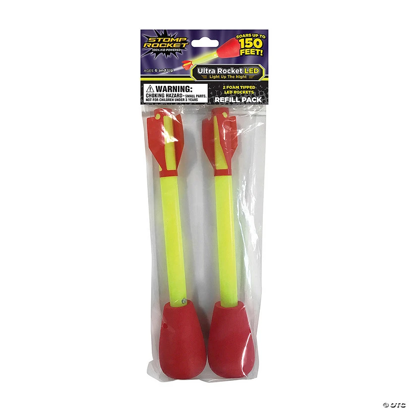 This Refill Pack contains 2 foam-tipped Ultra LED Stomp Rockets. Click to turn on the powerful LED light inside, and these Stomp Rockets will really shine in the night sky, so it’s fun to play outdoors after dusk and on gloomy days too. Light up the night with vibrant color. The LED lights inside these rockets make them bright enough to double as a flashlight! Stomp Rocket Ultra LED is 100% KID-powered: Run, jump and STOMP to launch these rockets up to 150 feet in the air using the Stomp Launcher in The Original Stomp Rocket: Ultra 4-Rocket Set. Stomp Rocket Ultra LED is strong and durable, and great for active, outdoor play. Stomp Rockets have won lots of awards from industry experts, including iParenting Media, Dr. Toy and Creative Child Magazine.
